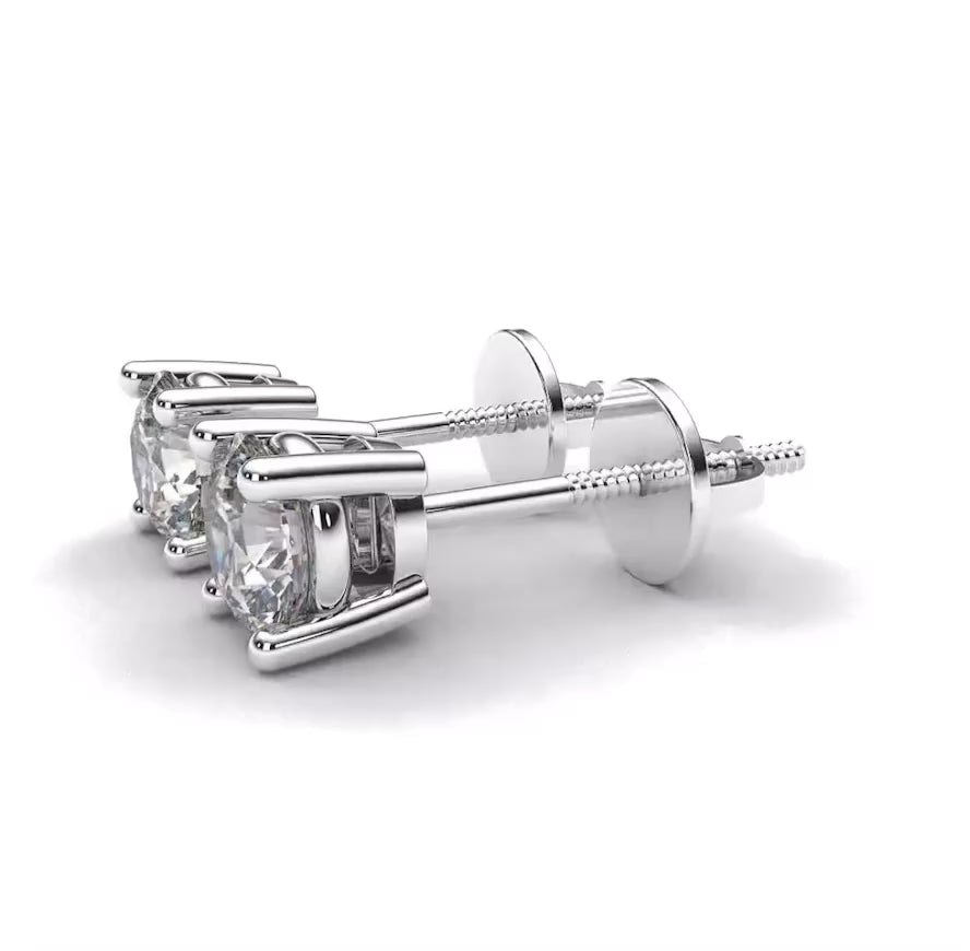 Round Lab Grown Diamond Stud Earrings in 18K Gold | D-F VS Very Good Cut